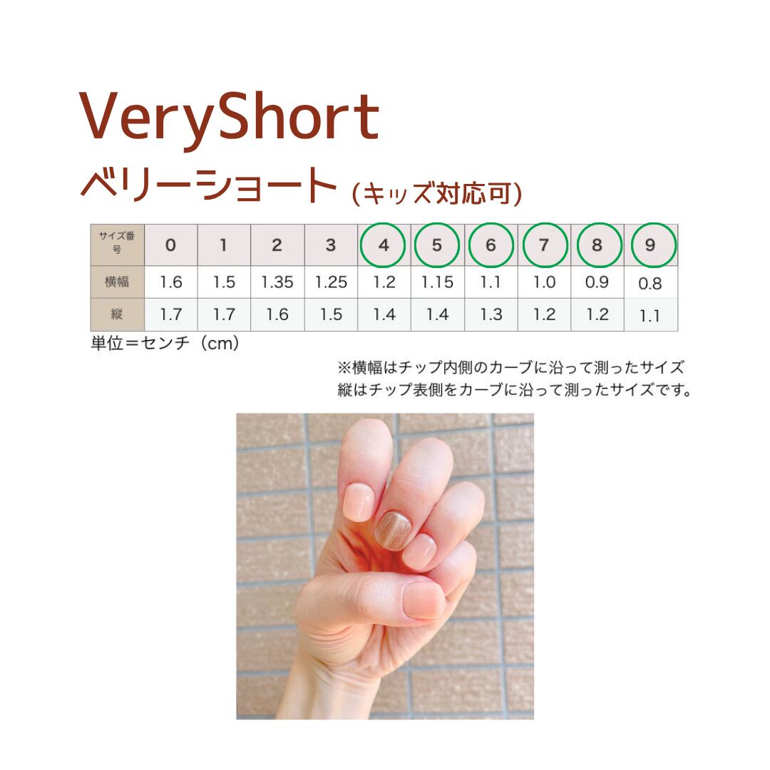 こちらは当店のベリーショート(nail tip laboのナチュラルショート size:445577778899番でお作りしたものです。