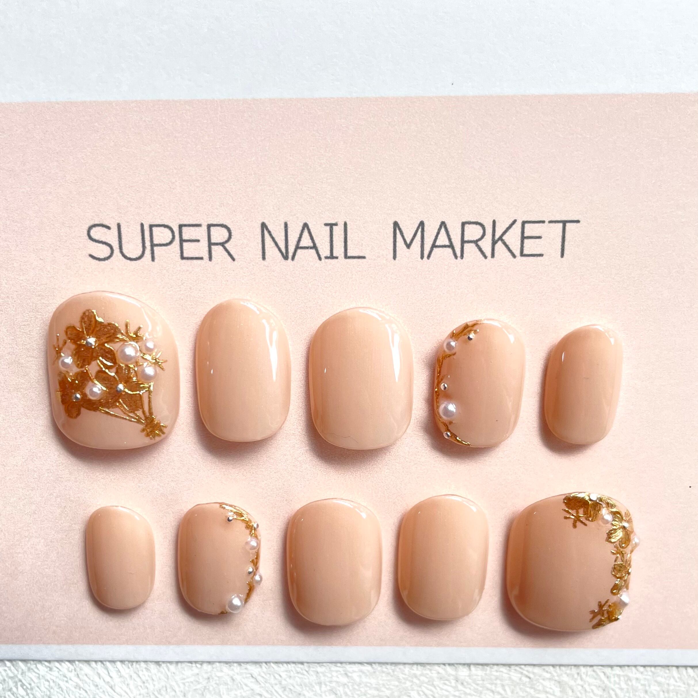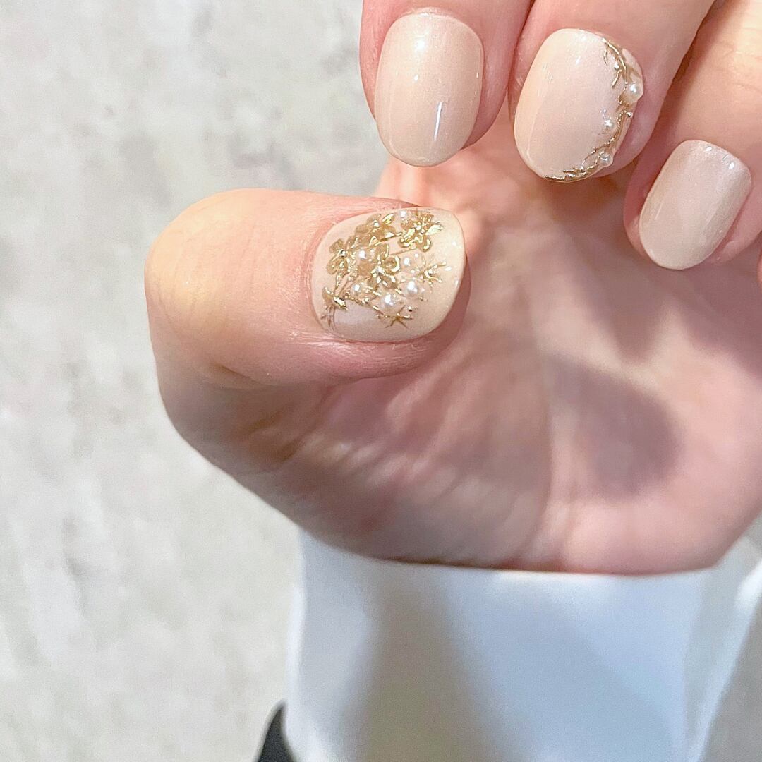 繊細なフラワーモチーフとビジューをあしらった上品ネイルチップ。